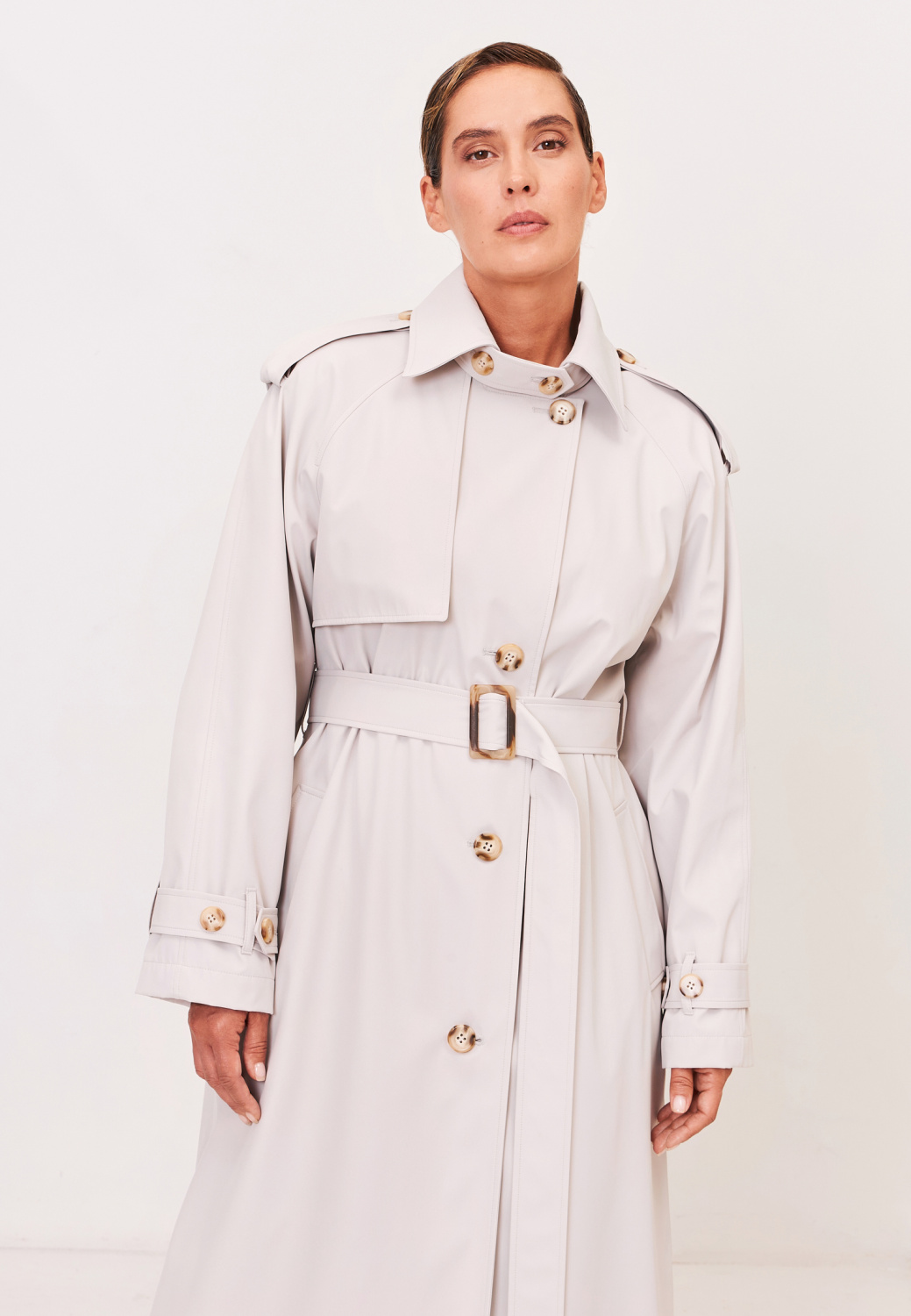 Тренч из плащевой ткани на мембране идеально подойдет на осень и весну. Лаконичную и элегантную модель легко встроить и в формальный образ, и в расслабленный casual.Плащевые ткани на мембране обладают водоупорными и паропроницаемыми свойствами. Эти свойства ткани обусловлены её микропористой мембранной структурой. Съемный пояс подчеркнет линию талии, а рукав реглан за счет плавной линии плеча придаст силуэту мягкости.